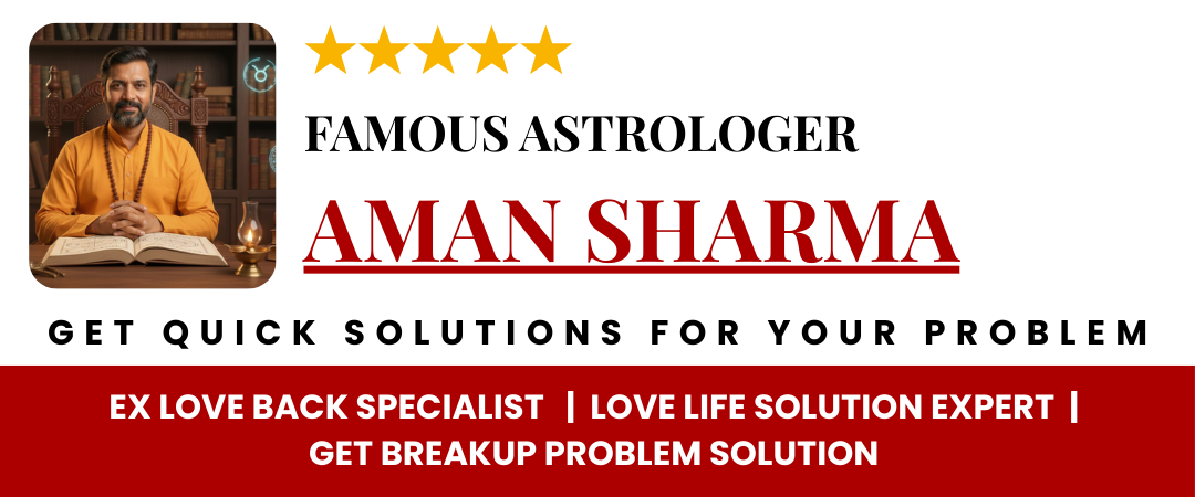 Astrologer Aman Sharma is a Best Astrologer in Bangalore who specializes in helping people with their life problems. He’s highly regarded as a Love Problem Astrologer in Bangalore, with a knack for understanding why couples might have problems in their marriage. His expertise lies in providing effective solutions as a Marriage Problem Specialist and Marriage Problem Solution Astrologer.